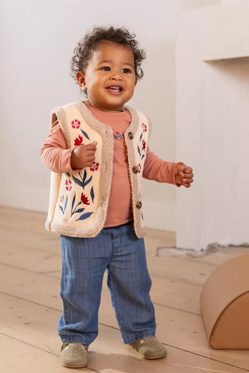 Wie süß ist denn unsere Hose Fontaine? Dieser Artikel darf im Kleiderschrank Ihres kleinen Mädchens auf keinen Fall fehlen. Der Denimstoff sorgt für einen trendigen Look, sodass Ihr Baby jederzeit stilvoll aussieht. Nicht nur zu Hause, sondern auch bei einem Tagesausflug oder zu einem festlichen Anlass. Kombinieren Sie das Teil mit einem coolen T-Shirt oder einem süßen Top und schon haben Sie ein tolles Outfit zusammengestellt.Die Hose hat eine lockere Passform, die für einen bequemen Sitz sorgt. In dieser Hose wird sich Ihr Kind den ganzen Tag wohlfühlen. Mit diesem Kleidungsstück in Ihrer Babygarderobe steht Ihnen ein Teil zur Verfügung, das sich endlos kombinieren lässt!