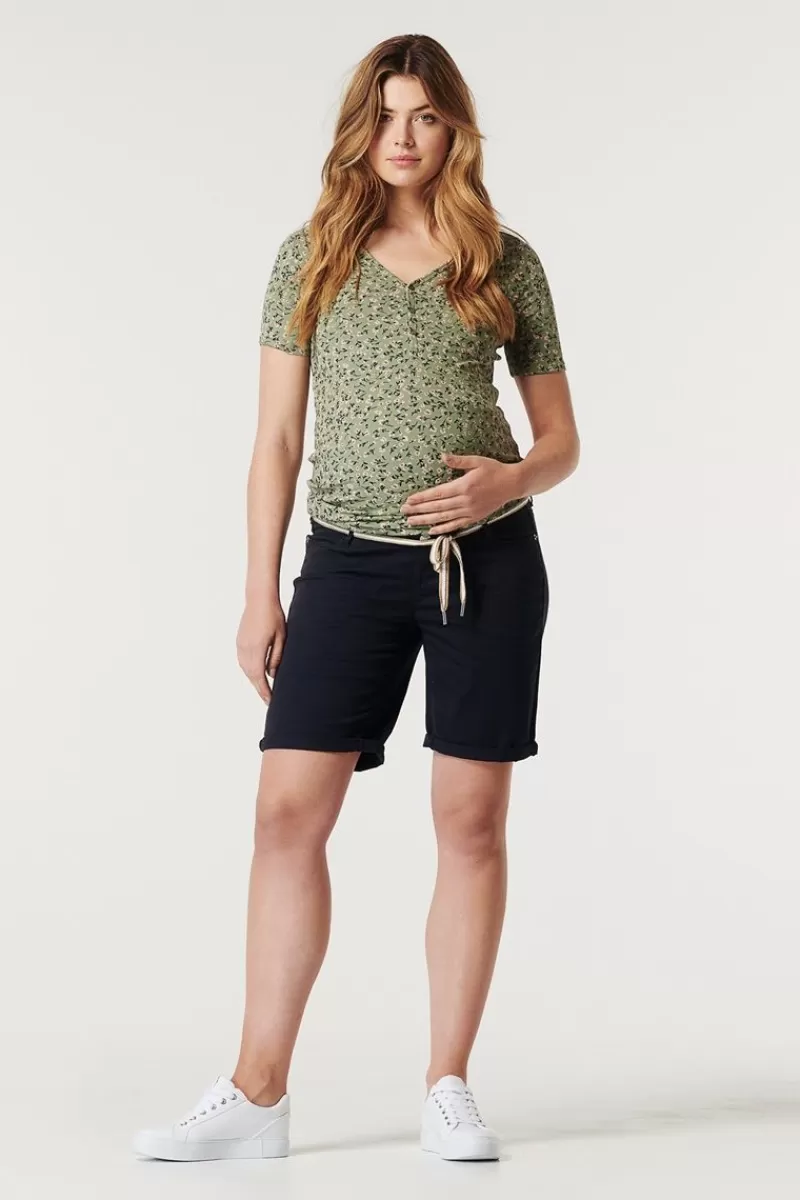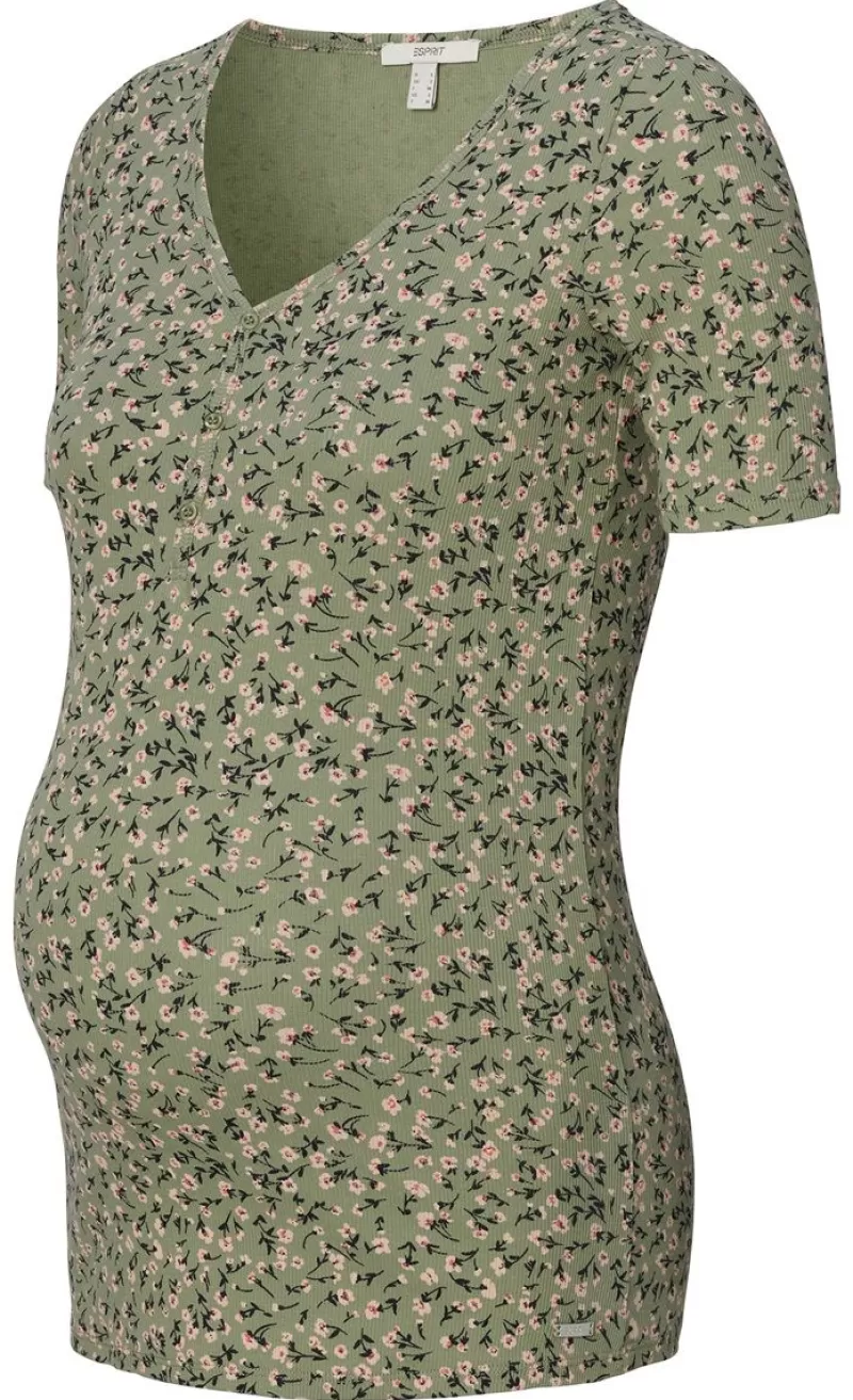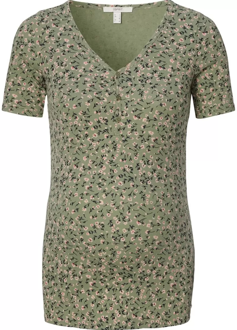 Die Blumen tanzen über Ihren wachsenden Bauch! Dieses T-Shirt von Esprit hat kurze Ärmel und Knöpfe auf der Vorderseite. Der weiche Rippstoff ist schön dehnbar und super angenehm zu tragen. Das Shirt ist so gearbeitet, dass Sie auch darin stillen können.Die Vorderseite ist etwas länger, so dass Ihr Bauch bedeckt bleibt und die Vorder- und Rückseite auf gleicher Höhe sind. Das sieht nicht nur schön aus, sondern sorgt auch dafür, dass Sie sich besser fühlen.Wir möchten Ihnen das Stillen so einfach und angenehm wie möglich machen. Sie können bei diesem Stil sofort mit dem Stillen beginnen, da Sie den Stoff nur zur Seite schieben müssen. Darunter befindet sich keine separate Stilleinlage.Weitere tolle Artikel mit diesem Print? Wir haben auch ein Hemdchen!Mit diesem Kleidungsstück treffen Sie nicht nur eine nachhaltigere Wahl für sich selbst, sondern auch für unseren Planeten. Es besteht komplett aus Bio-Baumwolle. Die Produktion unterstützt die Gesundheit des Bodens, der Ökosysteme und der Menschen durch die Nutzung natürlicher Prozesse. Und haben wir schon erwähnt, wie herrlich weich es ist?